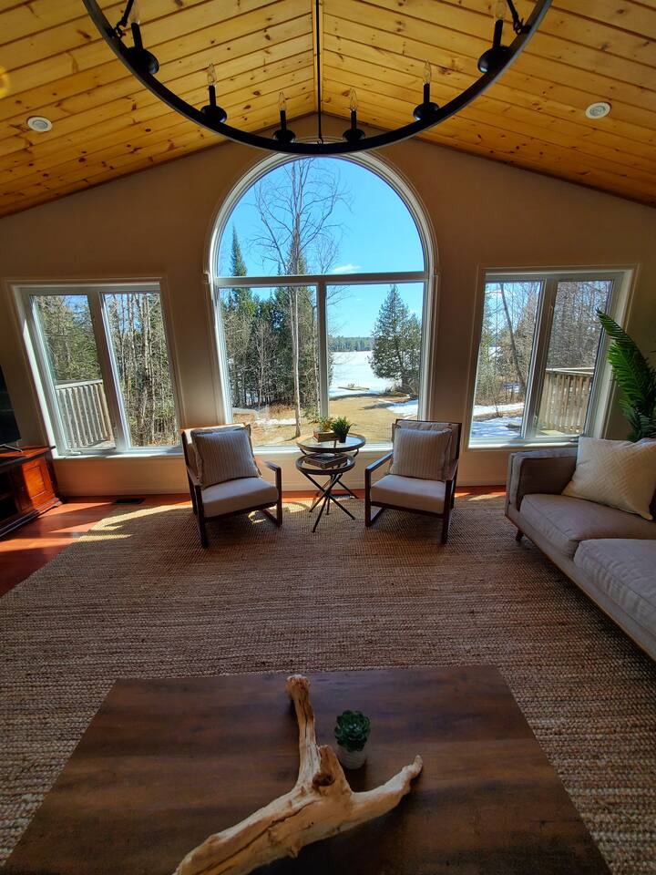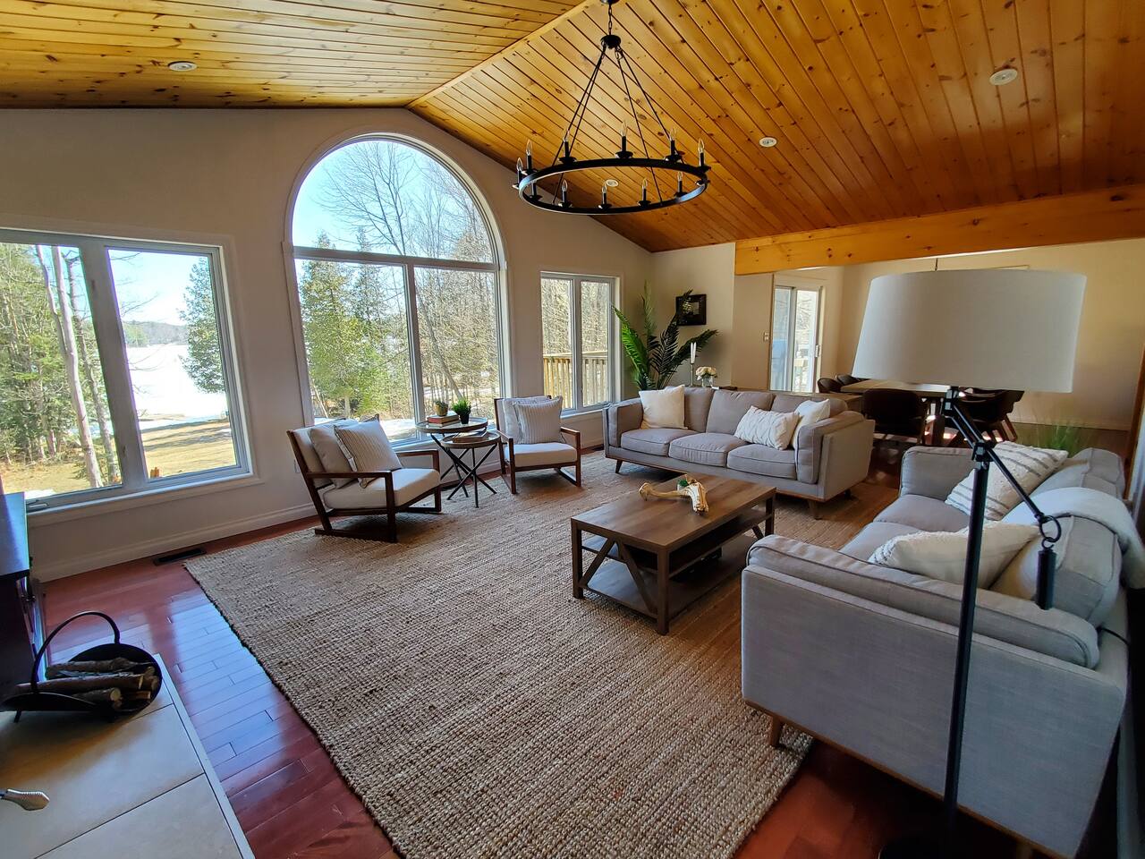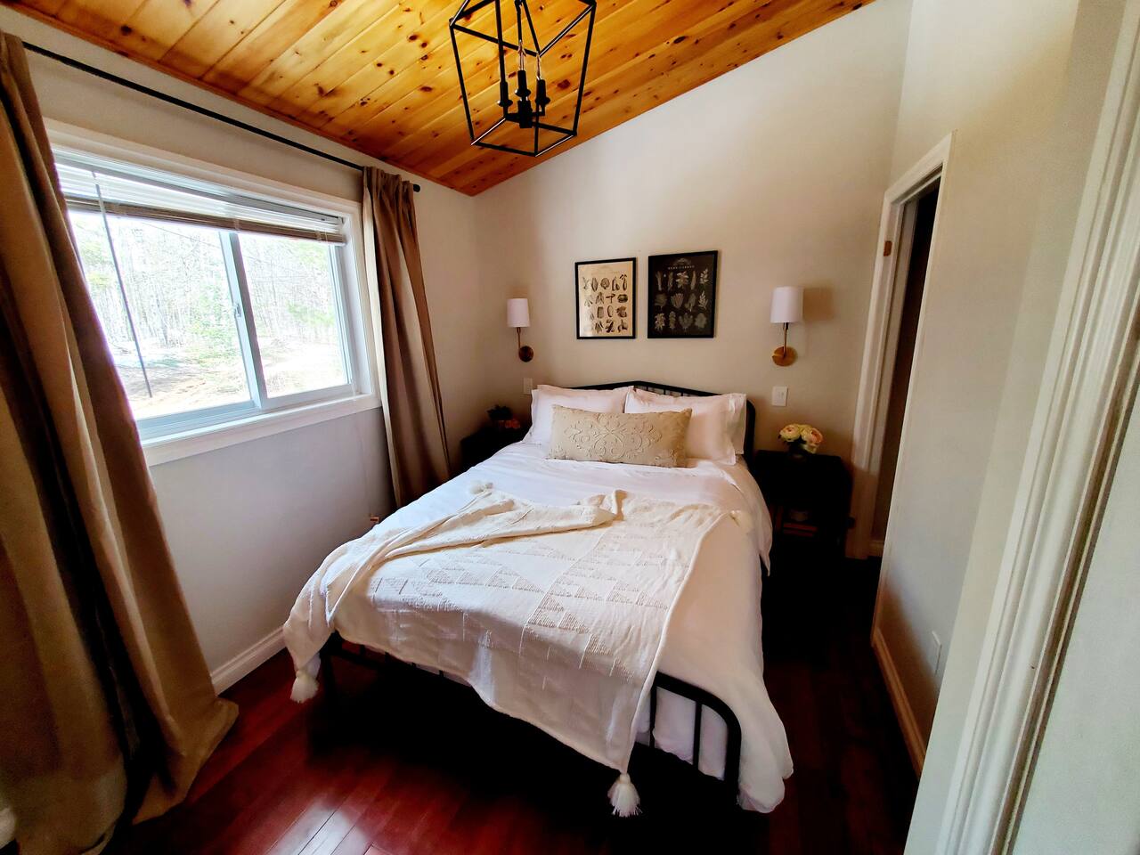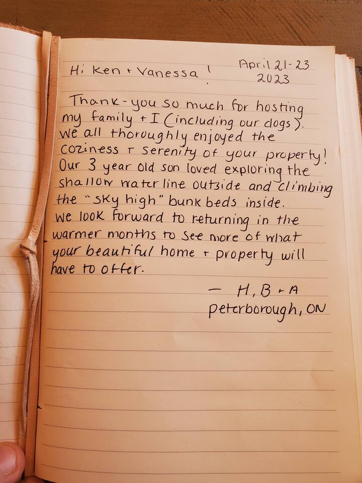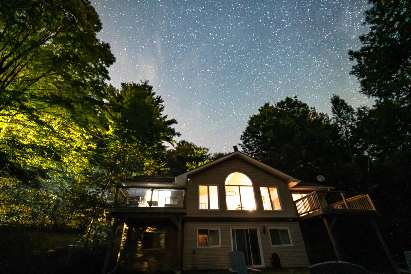 Follow us on IG @hemlockhideaway. ca ONLY 2 hours from the GTA! Hemlock Hideaway is a 4 season lake house between Kawartha Lakes and Haliburton. Located on South Lake abundant in large and small mouth bass, pickerel and pike. Just 5 minutes from the charming town of Minden. This striking space is Newly updated and professionally decorated with attention to every detail. Although fairly spacious and luxurious, Hemlock Hideaway maintains its warmth and coziness, ready to welcome you and envelope you in comfort and ease. Perfect for families or friends to enjoy all of the comforts of a modern cottage living. Gentle sloped backyard safe for children and sports play. We look forward to welcoming you to your perfect getaway in Haliburton County. Let us help you relax, unwind and enjoy an incredible vacation in nature. Included for your enjoyment: - Starlink Internet AVAILABLE NOW! (fastest internet around) Very few rentals are allowed to have it in Haliburton Region. - free unlimited internet (up to 150 Mbps) Average in the area is 5 Mbps for all of your gaming or streaming needs! - 65" Smart TV with Netflix, YouTube, Disney+ and Prime (Stack) TV - assorted board games and novels - lake access with private dock and shallow shoreline - indoor wood burning fireplace - outdoor fire pit w/ firewood - everything you need for the fire is provided - Matches, carboard, paper and some wood. If you need more the local gas bar sells for $9 a bundle. - NEW Napoleon Propane BBQ - NEW Weber Smoker Grill Some details about Hemlock Hideaway Lakehouse: 3 bedrooms: First Master - 1 king, Second - 1 queen, Third - 1 twin over full bunkbed, 1 single trundle bed *Trundle available under bunkbed 2 bathrooms: One FULL bathroom is on main floor 2nd FULL bathroom down stairs. (Newly Renovated bathroom in early 2024.) *basement is currently unfinished. Enjoy a restful sleep. All bedrooms are thoughtfully decorated and include plush memory foam mattresses, hotel down alternative hypoallergenic pillows, high quality white linens, and black out curtains. Ecologically-minded luxury soap, shampoo, conditioner and body wash, and plush white towels available for guest convenience. All linens included in your stay, professionally washed offsite. Duvet covers changed and professionally washed between each guest stay. Kitchen outfitted with everything you need to cook a family meal. Appliances include stove, oven, dishwasher, fridge/freezer, microwave, large drip coffeemaker, toaster, and kettle. Gather in the Open concept living room and enjoy incredible views of South lake. Share a meal in the large dining room that seats 10. Walk out onto the furnished deck to enjoy a morning coffee, share an evening cocktail, grill or take in nature. Its very common to be surrounded by wildlife or spot a deer. For a more intimate gathering enjoy the secondary deck with private access from the primary bedroom. The dock is near the back of the property (see pictures). The water is waist deep immediately off the dock, perfect for jumping into the lake and mooring your personal or rental boat. At the end of the night enjoy our Muskoka chairs while looking up, taking in the vast night starry sky. Enjoy being surrounded in the beauty and healing power of nature, relaxing, feeling warm and toasty, hearing the crackling fire and breathing in the fresh Haliburton air. At Hemlock Hideaway, we are dedicated to helping you: Rest, Relax & Reconnect Explore & Enjoy Minden Hills Create New Memories SPECIAL NOTE: Do you need to sleep more guests? We may be able to accommodate small campers / RVs on the property. Please inquire with the host before booking. Special rates may apply. (No unauthorized guests are permitted without host permission) We may consider requests for small, intimate weddings (12 guests), working with event planer. So your wedding details taken care of so that you can focus on the magic moments of your wedding day at Hemlock Hideaway.