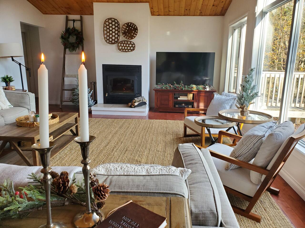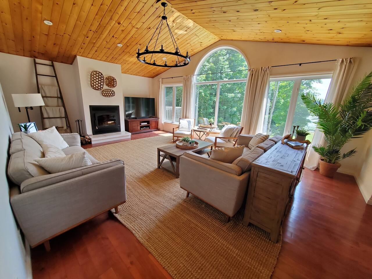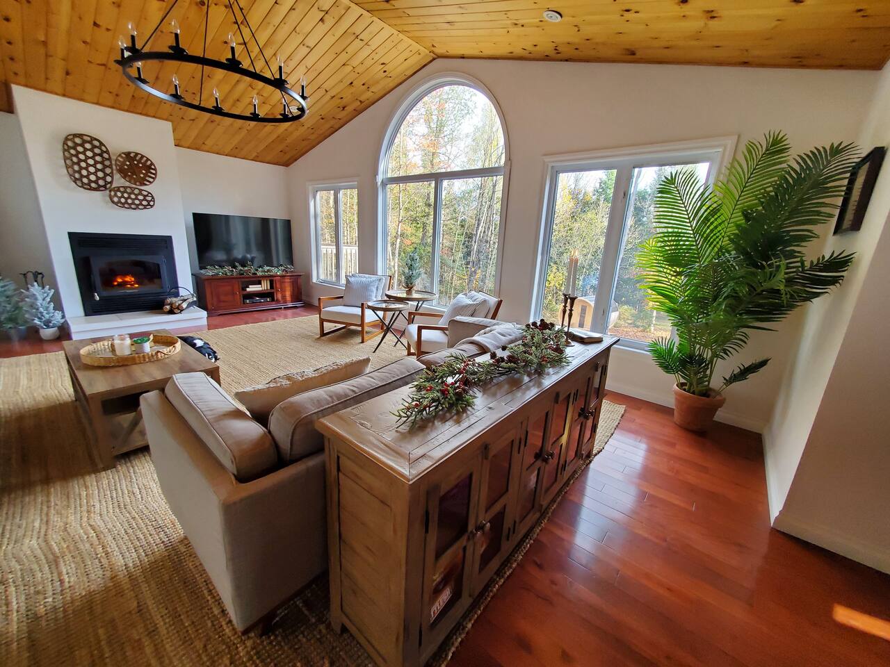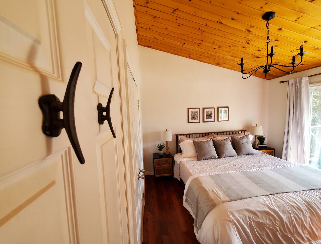 Follow us on IG @hemlockhideaway. ca ONLY 2 hours from the GTA! Hemlock Hideaway is a 4 season lake house between Kawartha Lakes and Haliburton. Located on South Lake abundant in large and small mouth bass, pickerel and pike. Just 5 minutes from the charming town of Minden. This striking space is Newly updated and professionally decorated with attention to every detail. Although fairly spacious and luxurious, Hemlock Hideaway maintains its warmth and coziness, ready to welcome you and envelope you in comfort and ease. Perfect for families or friends to enjoy all of the comforts of a modern cottage living. Gentle sloped backyard safe for children and sports play. We look forward to welcoming you to your perfect getaway in Haliburton County. Let us help you relax, unwind and enjoy an incredible vacation in nature. Included for your enjoyment: - Starlink Internet AVAILABLE NOW! (fastest internet around) Very few rentals are allowed to have it in Haliburton Region. - free unlimited internet (up to 150 Mbps) Average in the area is 5 Mbps for all of your gaming or streaming needs! - 65" Smart TV with Netflix, YouTube, Disney+ and Prime (Stack) TV - assorted board games and novels - lake access with private dock and shallow shoreline - indoor wood burning fireplace - outdoor fire pit w/ firewood - everything you need for the fire is provided - Matches, carboard, paper and some wood. If you need more the local gas bar sells for $9 a bundle. - NEW Napoleon Propane BBQ - NEW Weber Smoker Grill Some details about Hemlock Hideaway Lakehouse: 3 bedrooms: First Master - 1 king, Second - 1 queen, Third - 1 twin over full bunkbed, 1 single trundle bed *Trundle available under bunkbed 2 bathrooms: One FULL bathroom is on main floor 2nd FULL bathroom down stairs. (Newly Renovated bathroom in early 2024.) *basement is currently unfinished. Enjoy a restful sleep. All bedrooms are thoughtfully decorated and include plush memory foam mattresses, hotel down alternative hypoallergenic pillows, high quality white linens, and black out curtains. Ecologically-minded luxury soap, shampoo, conditioner and body wash, and plush white towels available for guest convenience. All linens included in your stay, professionally washed offsite. Duvet covers changed and professionally washed between each guest stay. Kitchen outfitted with everything you need to cook a family meal. Appliances include stove, oven, dishwasher, fridge/freezer, microwave, large drip coffeemaker, toaster, and kettle. Gather in the Open concept living room and enjoy incredible views of South lake. Share a meal in the large dining room that seats 10. Walk out onto the furnished deck to enjoy a morning coffee, share an evening cocktail, grill or take in nature. Its very common to be surrounded by wildlife or spot a deer. For a more intimate gathering enjoy the secondary deck with private access from the primary bedroom. The dock is near the back of the property (see pictures). The water is waist deep immediately off the dock, perfect for jumping into the lake and mooring your personal or rental boat. At the end of the night enjoy our Muskoka chairs while looking up, taking in the vast night starry sky. Enjoy being surrounded in the beauty and healing power of nature, relaxing, feeling warm and toasty, hearing the crackling fire and breathing in the fresh Haliburton air. At Hemlock Hideaway, we are dedicated to helping you: Rest, Relax & Reconnect Explore & Enjoy Minden Hills Create New Memories SPECIAL NOTE: Do you need to sleep more guests? We may be able to accommodate small campers / RVs on the property. Please inquire with the host before booking. Special rates may apply. (No unauthorized guests are permitted without host permission) We may consider requests for small, intimate weddings (12 guests), working with event planer. So your wedding details taken care of so that you can focus on the magic moments of your wedding day at Hemlock Hideaway.