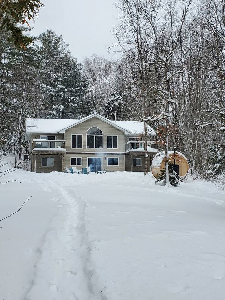 For summer: Free parking for the cottage is available (no inside garage parking available). There is ample parking on the driveway.. For winter: The laneway leading to the cottage is regularly maintained by the municipality and plowed, as well as the top parking lot, however, snow accumulates quickly in Minden Hills and a 4 wheel drive vehicle maybe necessary. Parking in the winter is at the front of the house, about a 10 ft. walk to the cottage, good winter boots are strongly recommended. Never attempt to step out unto the frozen lake near the dock when temperatures have not been ideal for ice fishing. Snowmobiling during the winter is popular in the area and on the ice. Trails are very near the house.