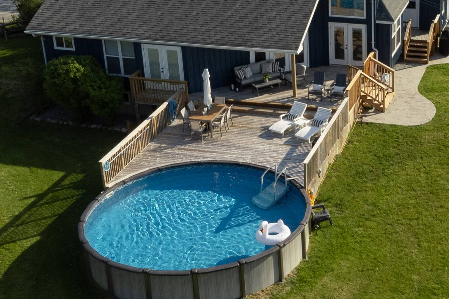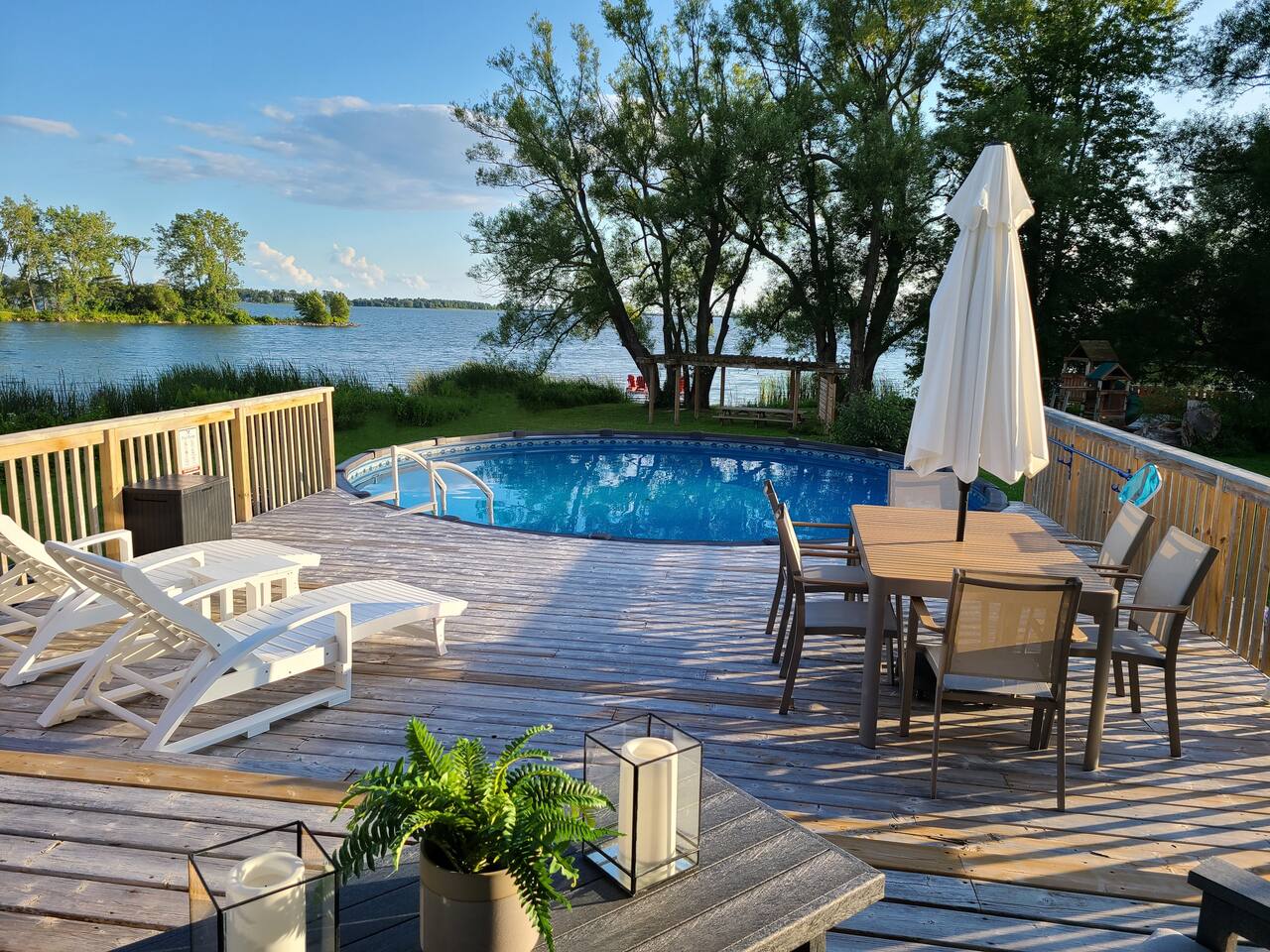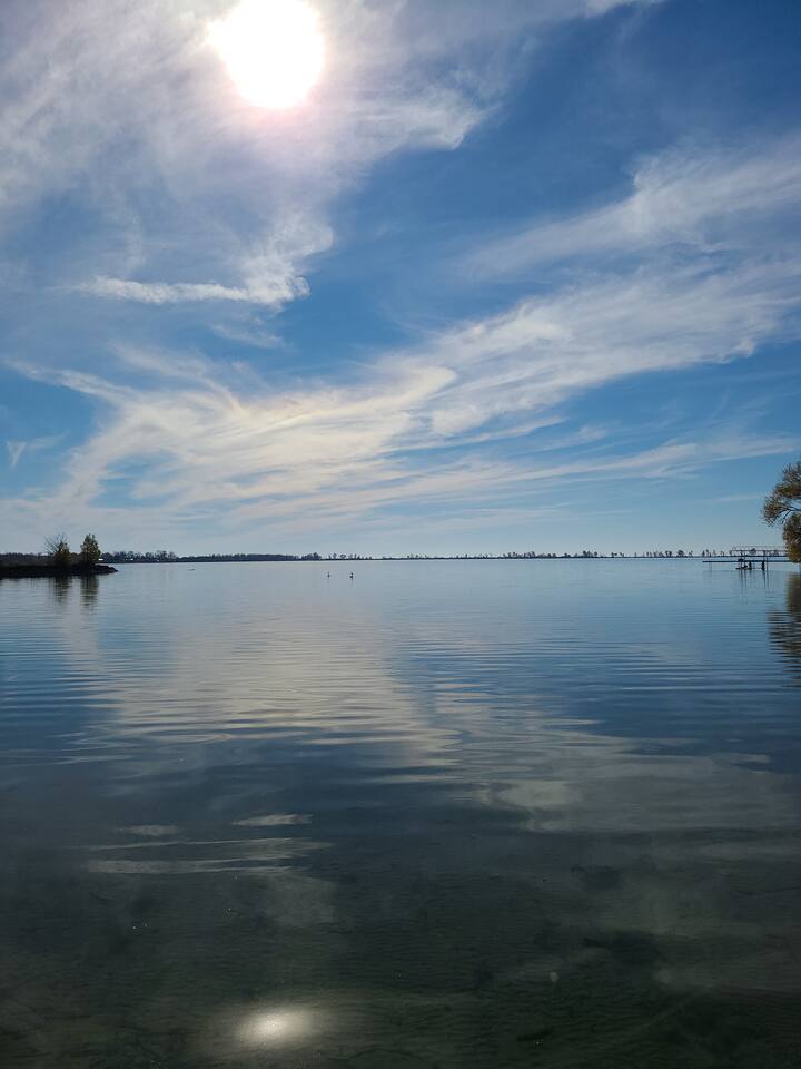 Guests have full access to the house, pool, fire pit, waterfront, dock, play structure and lake facing lawn over the fence from the driveway. A full time tenant lives in a separate dwelling on the West side of the property. Please do not use the lawn surrounding or park in front of the separate dwelling. Two park passes for access to Sandbanks are provided for use during your stay. Booking is required up to 5 days in advance to access the park (free with the passes provided).